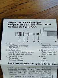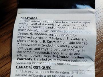 Vendo in condizioni pari al nuovo torcia tascabile Maglite Solitaire con lampadina ad incandescenza. La torcia viene fornita con la sua custodia originale e con tutta la dotazione da originale (batteria nuova) quindi con cordino/portachiavi, lampadina di ricambio ed istruzioni. Dimensioni molto compatte, 8 cm di lunghezza, funziona con una singola batteria di tipo AAA, realizzata in alluminio resistente.