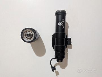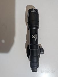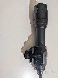 Torcia tattica professionale per softair a marchio WADSN. Attacco compatibile con slitte standard da 20mm/Picatinny. Funziona con due batterie CR123A. Include un interruttore remoto per l'accensione momentanea, possibilità di regolare il fascio luminoso. Condizioni pari al nuovo, usata 1 volta.