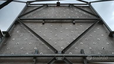 TORRE AUTOPORTANTE PER ARRAMPICATA SPORTIVA CON UNA PARETE DRITTA FRONTALE E SUL RETRO CON UNA PARETE INCLINATA A 25 GRADI. ALTA SEI METRI E LARGA 2,5. ZAVORRA COSTITUITA DA DUE CISTERNE DA MILLE LITRI UNA. TUTTA IN ACCIAIO ZINCATO. SOLO STRUTTURA METALLICA 3000 EURO. STRUTTURA METALLICA CON PANNELLI D’ARRAMPICATA IN LEGNO MULTISTRATO MARINO CON GRIP E RAGNETTI NUOVI PER ENTRAMBE LE PARETI 6000 EURO. COMPLETA DI OMOLOGAZIONE. COMPLETAMENTE SMONTATA PRONTA PER IL TRASPORTO VISIBILE A ROMA ZONA TOR DI QUINTO. RICCARDO CELL. 360559143