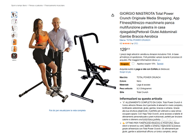 Vendo per inutilizzo Total Power Crunch. L'attrezzo è adatto per allenare tutto il corpo (schiena, braccia, addominali, gambe e glutei), è richiudibile e occupa poco spazio. Pubblicizzato da Giorgio Mastrotta in tv.