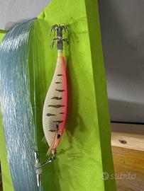 Costituita da più di 100 metri di lenza, totanara con porta lampadina piombata con piombo intercambiabile, jig pesciolino, girella e tre lamparine di scorta.. tutto NUOVO.