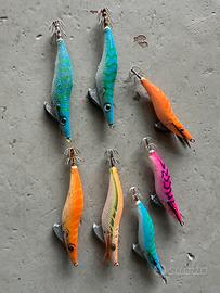 Vendo totanare per pesca eging in mare a calamari e seppie. Totanare fascia media e alta delle varie marche tra cui DTD, Yamashita, Shimano, e altre. Di qualita da mediocre a buona e molte ottime! Vendo tutte assieme o a piccoli gruppi selezionabili (minimo 4-5 pezzi per spedizione). Totale 65 totanare.