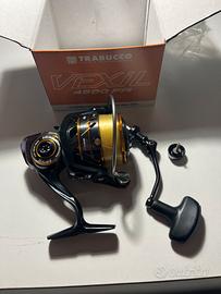 Mulinello Trabucco vexil FA 4500 usato solo due volte come si può vedere dalle foto il mulinello è come nuovo nessun segno di usura, nessun graffio. Ottimo per bolognese o trota Lago. Solo ritiro a mano.