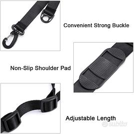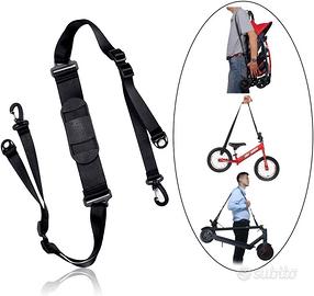 Tracolla Cinghia Trasporto Spalla Regolabile Monopattino e Bici Elettrico Condizioni perfette, pari al nuovo. Usato pochissime volte. Nessun difetto estetico o funzionale. Caratteristiche tecniche: Cinghia a spalla regolabile con antiscivolo per massimo comfort durante il trasporto Fibbie resistenti e ganci a moschettone girevoli per un fissaggio rapido e sicuro Lunghezza totale regolabile da circa 130 cm a 183 cm Circonferenza massima regolabile fino a 81 cm Capacità di carico elevata (fino a 35 kg) Tracolla universale, si adatta perfettamente a quasi tutti i monopattini elettrici pieghevoli (Xiaomi M365 / 1S / Pro / Essential, Ninebot, Segway, ecc.), biciclette pieghevoli, monopattini a spinta, balance bike e altro. Installazione facilissima in pochi secondi: aggancia i moschettoni al telaio o alle ruote e regola la spalla. Ideale per salire scale, mezzi pubblici o trasporti senza fatica. Perfetto per chi usa il monopattino tutti i giorni e vuole trasportarlo comodamente senza stressare braccia o schiena.