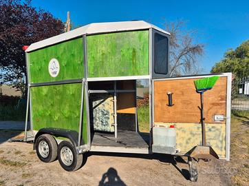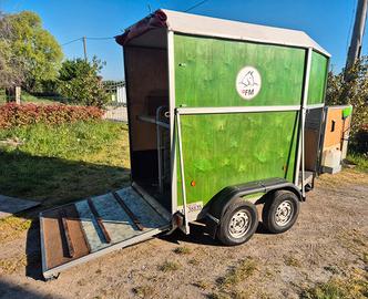 Si propone in vendita trailer trasporto cavalli in perfette condizioni immatricolato TATS variabile 1000-1600 kg marca nord piave appena revisionato 30 marzo 26, trasporto 2 cavalli con pareti laterali e rampe nuove, pianale trattato in perfette condizioni con gomma, oblo sul tetto nuovo, ruotino knott appena sostituito nuovo, porta ispezione con tanica acqua e accessori per pulizia, barra esterna apribile per legare cavallo in sicurezza, divisoria removibile, tendalino posteriore e ruota di scorta.