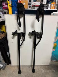 Trampoli Professionali UNICYCLE Voltige – Per Artisti di Strada e Spettacolo Coppia di trampoli professionali a canna fissa del prestigioso marchio francese Unicycle.fr (Linea Voltige). Si tratta di attrezzatura tecnica di alta qualità, ideale per artisti di strada, performer circensi, parate scenografiche o animazione. Questi trampoli sono progettati per offrire il massimo equilibrio tra leggerezza e robustezza, garantendo stabilità e sicurezza durante il movimento. Caratteristiche Principali: Marca: Unicycle / Voltige (specialisti in attrezzature per circo e giocoleria). Struttura: Realizzati in metallo ultra-resistente con finitura nera opaca. Sistema di Fissaggio: Dotati di ampie placche poggia-polpaccio imbottite e cinghie regolabili ad alta tenuta (fast-release) per una calzata sicura e confortevole. Comfort: Supporti per il piede ergonomici con cinghie di sicurezza integrate. Base: Puntali in gomma ad alto grip, perfetti per superfici lisce o asfalto, che garantiscono un’ottima aderenza e protezione del suolo. Condizioni dell’Oggetto: Gli articoli sono in ottime condizioni estetiche e funzionali. Presentano solo lievi segni di normale utilizzo che non ne compromettono in alcun modo la sicurezza o la stabilità. Le cinghie sono integre e i puntali in gomma sono ancora in ottimo stato. Dal poggia piedi al gommino è alto 90 cm.