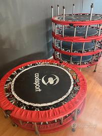 15 trampolini CoalSport, diametro 120cm. In aggiunta 5 teli di ricambio vari piedini, molle, tenditelo