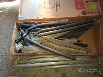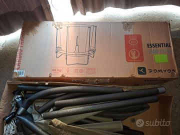 Il trampolino elastico da 240 cm di diametro. Vendo solo struttura portante e tappeto elastico (con relative molle di aggancio). Manca il tappeto di protezione laterale e la rete di sicurezza. Le protezioni dei tubolari sono presenti ma potrebbe essere necessario sostituirle. La struttura presenta segni di usura dovuti all’utilizzo all’esterno ma è comunque ancora resistente. Il bene viene venduto nelle condizioni descritte e come in foto, visto e piaciuto. Consegna/ritiro da concordare. No spedizione.