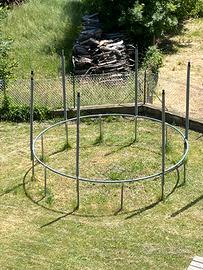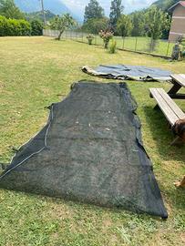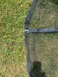 Il tappeto elastico (diametro 3,65 metri), protezioni e rete sono stati montati sempre solo per 2 mesi l’anno poi riposti in garage. Presente cucitura sulla rete come da foto.
