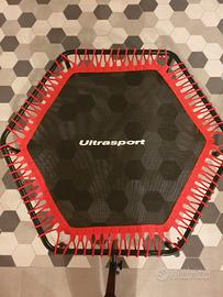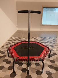Trampolino elastico con tubo regolabile in altezza. Elastico di media rigidità. Con piedini gommati.
