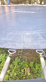 Vendo trampolino elastico da giardino. Diametro 240cm. Tappeto cambiato nel 2025 e praticamente non usato. Rete di protezione danneggiata come da foto. Vendo già smontato, solo ritiro.