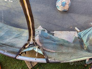 trampolino elastico usato. il tappetino coprimolle è stato rotto dal cane per 50cm circa