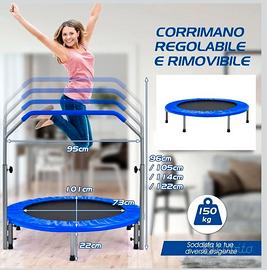 Trampolino per Bambini e Adulti, Tappeto Elastico Pieghevole e Regolabile in 4 Altezze con Maniglia, Capacità di Carico 150 kg