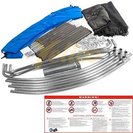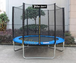 CARATTERISTICHE TECNICHE: Telaio con tubi in acciaio zincato di qualità del diametro di 38 mm e spessore 1,2 mm. Sistema di connessione con giunti a T per una super resistenza. Tre doppie gambe. Protezione molle nel bordo larga 30 cm, imbottita con spugna 12 mm. Numero 48 molle in acciaio zincato. Tappeto in polipropilene PP-Mesh di alta qualità. Rete di sicurezza in PP con porta di entrata. Diametro tubi della rete 25 mm. Protezione tubi in spugna. Senza scaletta, non serve perchè è basso.