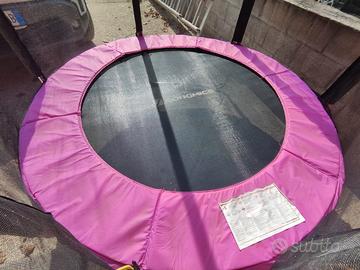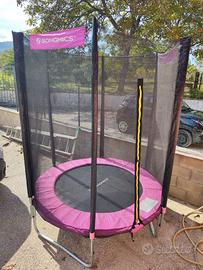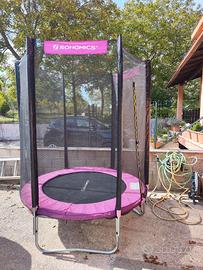 Trampolino 183 cm SONGMICS, Trampolino da Giardino, con Rete di Sicurezza, Copertura del Bordo, Scala, Aste Alte 180 cm, Telaio in Acciaio, Capacità massima 100 Kg.