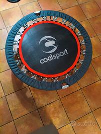 Trampolino elastico Coal Sport pubblicizzato da Jill Cooper. Perfetto per tonificare e perdere peso divertendosi. In perfette condizioni, utilizzato solo 2 volte per problemi alla schiena. Diametro 115 cm. Completo di sacca e imballaggio originale.