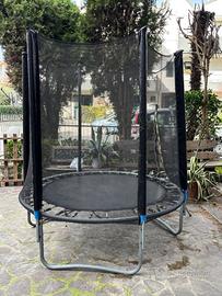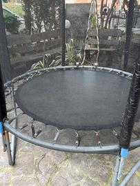 Trampolino rotondo da giardino con rete di sicurezza, scala e barre imbottite, copertura di sicurezza, esterno