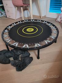 Trampolino per ginnastica da interno, marca Decathlon in perfette condizioni. Comodo e salva spazio, di dimensioni ideali da tenere sotto al letto o dietro una porta. Completo di sua copertura protettiva per quando riposto. Come nuovo.