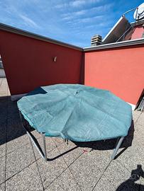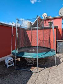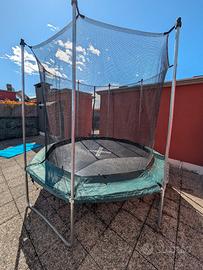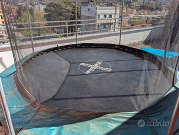Trampolino Elastico Octagonal 300 (3 metri) Descrizione: Vendo trampolino elastico modello Octagonal 300 con diametro di 3 metri. È la soluzione perfetta per il divertimento all'aria aperta in totale sicurezza! Il trampolino è usato ma in buono stato di conservazione. La struttura è solida e include tutti gli accessori fondamentali per la sicurezza e la manutenzione. Cosa è incluso: Rete di protezione: Alta e resistente per prevenire cadute. Bordo imbottito: Copertura protettiva per le molle (colore verde). Telo di copertura: Fondamentale per proteggere il tappeto elastico dalle intemperie quando non viene usato. Scatola originale: Disponibile per un trasporto più ordinato. Logistica e Ritiro: Smontaggio: Sono disponibile ad aiutarvi nello smontaggio (un ottimo modo per imparare come rimontarlo facilmente a casa vostra!). Trasporto: Una volta smontato, i componenti entrano comodamente in una macchina standard. Ritiro: Solo ritiro a mano, ma posso aiutarvi a portarlo a casa