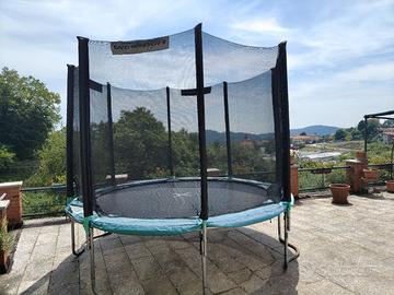 vendesi trampolino visibile in foto. il diametro ampio ne consente l'uso da parte di più bambini contemporaneamente. Appena inscatolato, completo di tutti i suoi componenti. imbottitura esterna usurata, visibile nelle foto. preferibile consegna diretta nel Biellese.