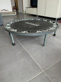 Vendo trampolino elastico (rebounder) professionale marca Duragym, linea Pro Series. Ottimo attrezzo per fitness, cardio, linfodrenaggio e tonificazione in casa. L'attrezzo è estremamente robusto e stabile, molto diverso dai modelli economici da supermercato. Dettagli: • Struttura: Telaio in acciaio ad alta resistenza. • Molle: In acciaio armonico (molto resistenti, garantiscono un rimbalzo fluido e sicuro). • Tappeto: Materiale tecnico anti-strappo in ottime condizioni. • Piedini: Dotati di gommini antiscivolo per non graffiare il pavimento e ridurre il rumore. • Stato: Perfettamente funzionante. Segnalo che è privo della guaina copri-molle estetica (facilmente reperibile online come ricambio universale se desiderata).