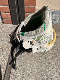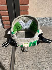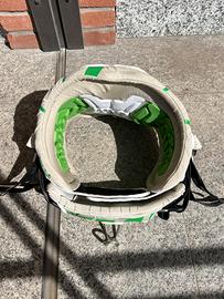 Vendo trapezio a fascia per kitesurf ION modello Apex, colorazione bianco/verde. Si tratta di un trapezio storico e molto apprezzato per il supporto lombare e il comfort, ideale per sessioni lunghe. Gancio: Include gancio in acciaio inox originale e leash pass sul retro. Condizioni dell'oggetto: Il trapezio è usato e presenta evidenti e normali segni di usura del tempo, visibili nelle foto dettagliate: La struttura esterna è integra e solida. L'imbottitura interna in EVA verde è in buone condizioni e mantiene la forma. I bordi in tessuto e neoprene presentano sfilacciature e scolorimento in vari punti (come da foto). Le cinghie di regolazione e le fibbie sono funzionanti. In sintesi, un trapezio funzionale ad un prezzo accessibile, ottimo come primo trapezio o come muletto.