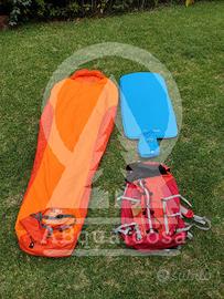 Vendo un set completo originale decathlon di prodotti ultralight. Il materassino gonfiabile corto, il sacco a pelo da 10°, e uno o entrambi gli zaini, uno da 50L (usato per la translagorai) e il 37L nuovo. Sul''immagine riepilogativa dell'offerta tutti i dati di ciascun prodotto.