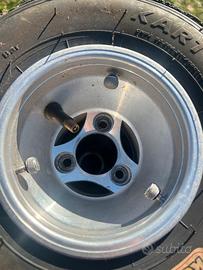 Treno di cerchi in aluminio per kart con mozzetti all’anteriore, al momento montano gomma comet. Non spedisco