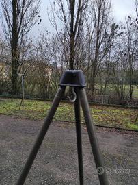 Treppiede Fox pari a nuovo usato 2 volte utile per poter facilitare l’operazione di pesatura del pesce. Realizzato con materiale resistente e dotato di gambe con puntale per avere un maggior ancoraggio al terreno; quest’ultime sono divisibili in due parti in modo da poter limitare l’ingombro una volta chiuso. Dotato di sacca per il trasporto inclusa nel prezzo.
