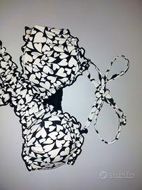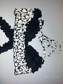Costume a triangolo intrecciato sotto il seno marca Goldenpoint Taglia 2⁰ Sfondo nero con cuori bianchi Coppe estraibili In perfette condizioni