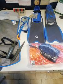 Vendo pinne 42,43 usate 1 volta Maschera usata 1 volta A Parte ho comprato boa e rete 1 pugnale mai usati
