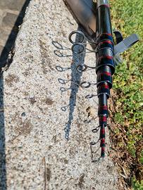 vendo set di canne da pesca cosi composto: 1) bolognosene colmic da 8mt mod fiume cast.15/25g 2) canna spinning sealstar da 2,10mt azione media 3) canna da fedeer arno 3,60 mt con due cime can e pari al.nuovo disponibile alla visione (non spedisco)