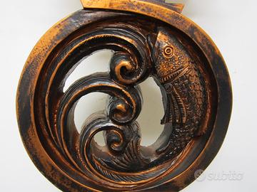 Elegante trofeo Pesca con decoro centrale in resina color bronzo, montato su base in marmo doppia. Tazza con manici color oro lucido battuta a mano. Altezza cm 50. Possibilità di avere la targhetta incisa