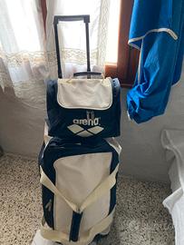 Come da foto per inutilizzo questo bellissimo borsone trolley Arena con tasche cerniere interne ed esterne tutte perfette più beauty case sempre Arena con una piccola macchia sulla parte visibile in foto multi tasca multi cerniere tutte perfette manca la cintura della tracolla mai stato usato si vede chiaramente dalle ruote e dalla parte sotto dí appoggio estrazione manico trolley perfettamente funzionante con chiusura a scomparsa con cerniera posso valutare qualche offerta ragionevole visto spese di spedizione misure 60 cm circa lunghezza 30/35 larghezza 40/45 cm altezza