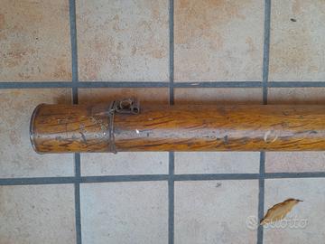 Rarissimo tubo porta canna, originariamente per una canna per la pesca a mosca dei salmoni con tappo di chiusura incernierato, eseguito in lamierino metallico dipinto a mano ad imitazione del bambù; quasi certamente di produzione inglese di fine 800 o primi 900; da collezione. Diametro cm 7, lunghezza cm 182 max. E’ in condizioni molto buone con solo alcune ossidazioni e piccole perdite di colore sparse, compatibili con l’età (vedi foto). Foto e informazioni supplementari disponibili a richiesta. Costi di spedizione: 20 euro via Corriere Espresso (no isole minori), oppure ritiro. E’ possibile, inoltre, concordare una consegna, secondo località. Per spedizioni internazionali chiedere quotazione.