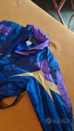 TUTA COMPLETA DESCENTE, TAGLIA 52 BLU CON INSERTI VIOLA E GIALLI STATO PRATICAMENTE NUOVA VENIVA INDOSSATA DA UN UOMO ALTO 170 PESO 75 KG CIRCA.
