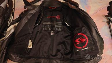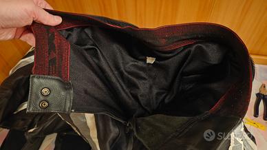 Vendo tuta da moto in pelle divisibile marca Spyke, taglia 48 IT., colorazione nero con inserti bianco/argento. La tuta è in ottime condizioni generali e tenuta con molta cura. Come si può vedere dalle foto: •Pelle senza alcun segno di caduta o abrasione. •Fodera interna traforata intatta e pulita. •Protezioni interne rigide presenti. Essendo divisibile, è comodissima sia per le uscite domenicali che per i viaggi, potendo usare anche solo la giacca all'occorrenza. Nota bene: La tuta viene venduta sprovvista delle saponette per le ginocchia (i supporti in velcro sono perfetti). Per chi volesse acquistarle facilmente su internet, la ricerca da fare per il modello originale compatibile è "spyke track slider".