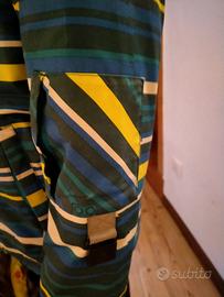 vendo tutto da sci bambino taglia 9 anni colore giallo fluo con linee catarifrangenti e giacca intonata giallo blu verde e bianca... giacca in ottime condizioni mentre i pantaloni sono semplicemente un po' sbiaditi. Taschina sulla manica della giacca per portare lo skipass, tasche interne ed elastico in vita per una migliore impermeabilità.