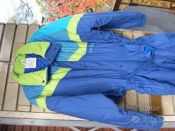 Tuta da sci intera da uomo, splendido vintage e tenuta benissimo, ottima sia internamente che esternamente, nessuna macchia o strappo, calda e pratica ideale per sciare e per la montagna in generale.