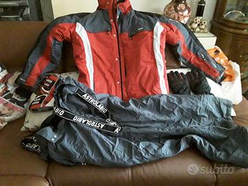 Tuta da sci da uomo, taglia M mai usata, professionale con rinforzi sui reni/schiena, pantaloni neri e giacca rossa, bianca e nera molto ben rifinita, con guanti da sci