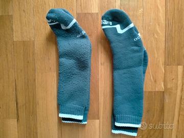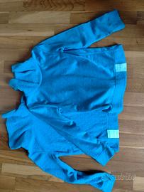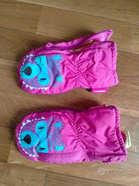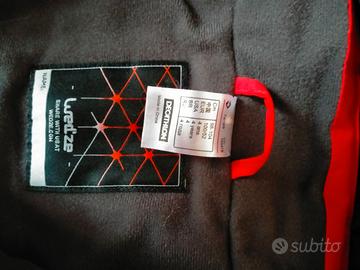 Tuta da sci rossa Wedze 4 anni, berretto doubleface rosso/blu, 2 maglie termiche blu, pantaloni termici neri, 2 paia di calzettoni 27-30, 1 paio di guanti imbottiti.