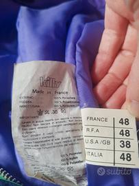 Tuta da sci intera da uomo poco usata (stile vintage), ed in ottime condizioni. C'è solo un piccolo taglietto ben cucito sul fondo di una gamba, altezza scarpone (vedere foto) poco visibile.