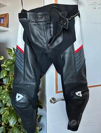 Tuta divisibile Rev'it Giacca 54 , pantalone 52 Così più comoda soprattutto alle spalle per chi magari ha un fisico atletico ,e poiché il pantalone vestiva abbondante Pantalone con le toppe a velcro, Ma posso metterci anche le saponette, possibilità anche di inserirci un paraschiena che posso fornire Traforata, molto bello anche il logo traforato sul petto, completa del piumino interno, regolazioni in vita BeepBeep ind.