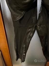 Tuta in pelle nera con protezioni. Taglia XXL vestibilita’ taglia 50. Mai usata Ottima occasione per moto sportive e classiche