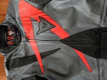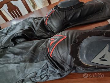 Molto comoda, seguendo le taglie Dainese è una L ma comoda e le protezioni stanno correttamente anche per chi veste M come me. Utilizzabili sia separatamente (giacca che pantaloni) e sia uniti (tramite la cerniera mostrata in foto). Presentano qualche imperfezione dato dall'utilizzo. Vendo per inutilizzo (non possiedo più la moto), per qualsiasi informazione sono a disposizione!
