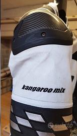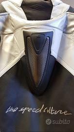Vendo Tuta Spyke intera, uso pista o strada, bianca e nera con protezioni su ginocchia, gomiti, spalle e schiena, tutte con inserti in carbonio. Pelle molto morbida essendo un Kangaroo mix. Inserti in tessuto elastico su braccio, gambe e cavallo.Tuta in buono stato, no graffi, no strappi e no scivolate. E' stata pulita con apposito prodotto per pelli. Fodera interna completamente rimovibile tramite cerniere. Presenza di tasca interna con cerniera. Apertura con cerniera su gambe e braccia. Tutte le cerniere perfettamente funzionanti.