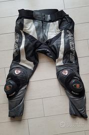 Tuta da moto in pelle divisibile Suomy, bianca, nera e grigia, inserti elastici per confort, traforata estiva, taglia 54 ma in zona addome allargata a 56/58 , circonferenza vita 120 cm.