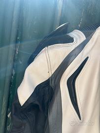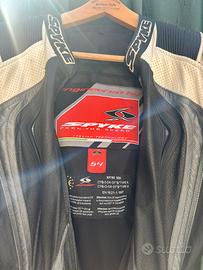 Vendo tuta da moto Spyke originale, bianca e nera, realizzata in pelle mista canguro, leggera ma molto resistente.