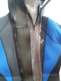Tuta Muta a mezze maniche e short con cappuccio. Cerniera frontale per un comodo indossaggio. Spessore 5mm. Non ha bisogno di presentazioni, per chi è del settore. Taglia 3.