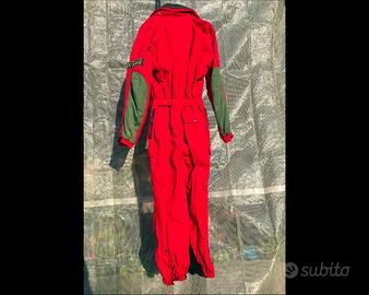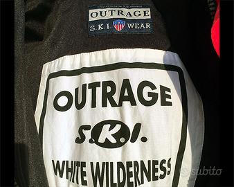 Caldissima tuta intera OUTRAGE usata due volte. Rivestimento traspirante interno e prese d'aria alle ascelle; rinforzi sugli avambracci; 7 tasche esterne (4 con cerniera, 3 con pattina e velcro interno) + 1 interna; chiusure in velcro ed elastico ai polsi; chiusure a cerniera, elastico e bottone alle caviglie; cappuccio asportabile con interno in pile e lacci di chiusura; cintura e doppia chiusura anteriore con cerniera e bottoni su pattina.